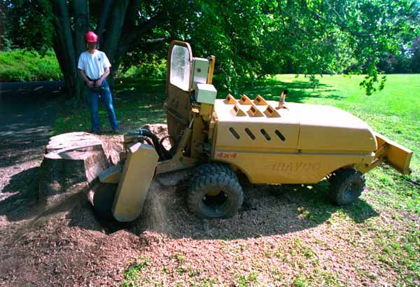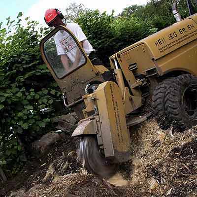 STUBBEFRESING ER RASKT OG EFFEKTIVTVåre helhydrauliske stubbefresere kan kjøres skånsomt over plener og frese bort trestubber og røtter inntil gjerder uten å gjøre skade. Vi har store og kraftige maskiner som egner seg til å frese bort store stubber i parker, kirkegårder og skogsterreng, og mindre maskiner som passer i trange bakgårder. Den minste kan kjøres gjennom en 90 cm bred port. Vanlig fresedybde er 15 20 cm under jordoverflaten. Hvis det skal plantes på samme sted, kan vi frese ekstra dype hull. Vi kan i de fleste tilfeller gi en pris over telefon basert på stubbens diameter målt nederst ved jordoverflaten. Dersom det skal kjøres over en plen som er vasstrukken, vil vi anbefale deg å vente til plenen har tørket noe opp. |
